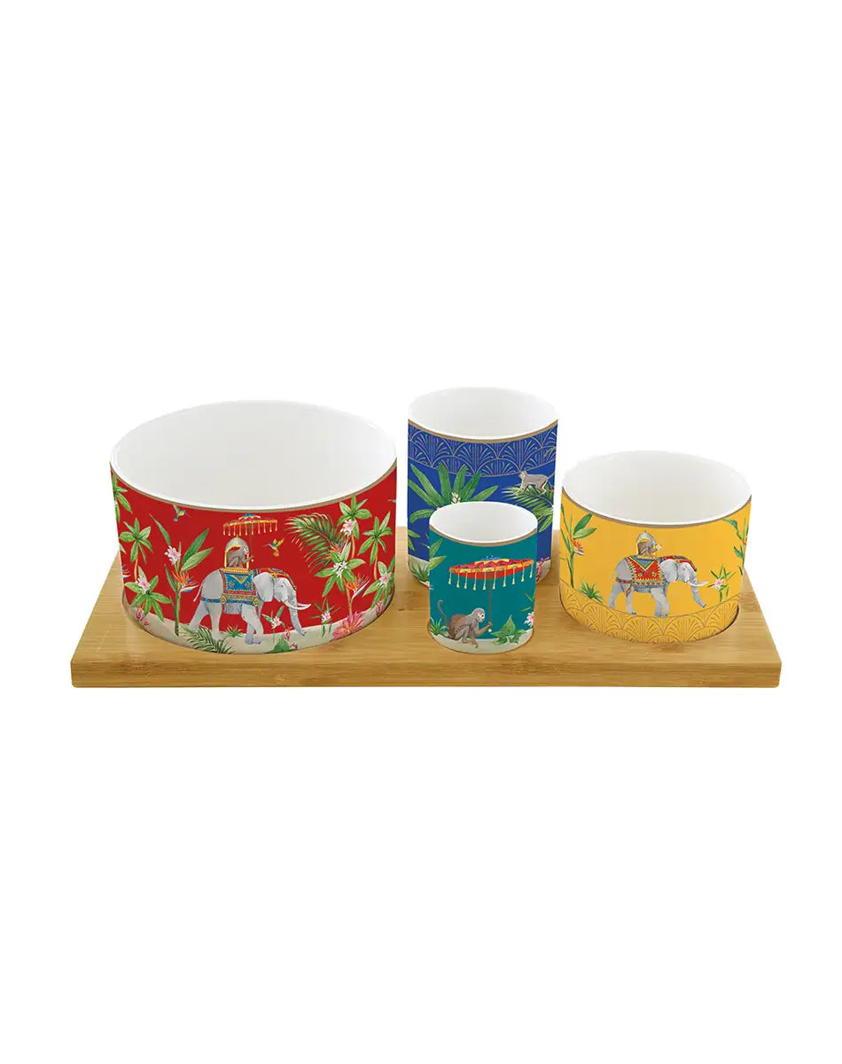 Appetizer Set with Four Round Bowls on Acacia Tray Marajah
