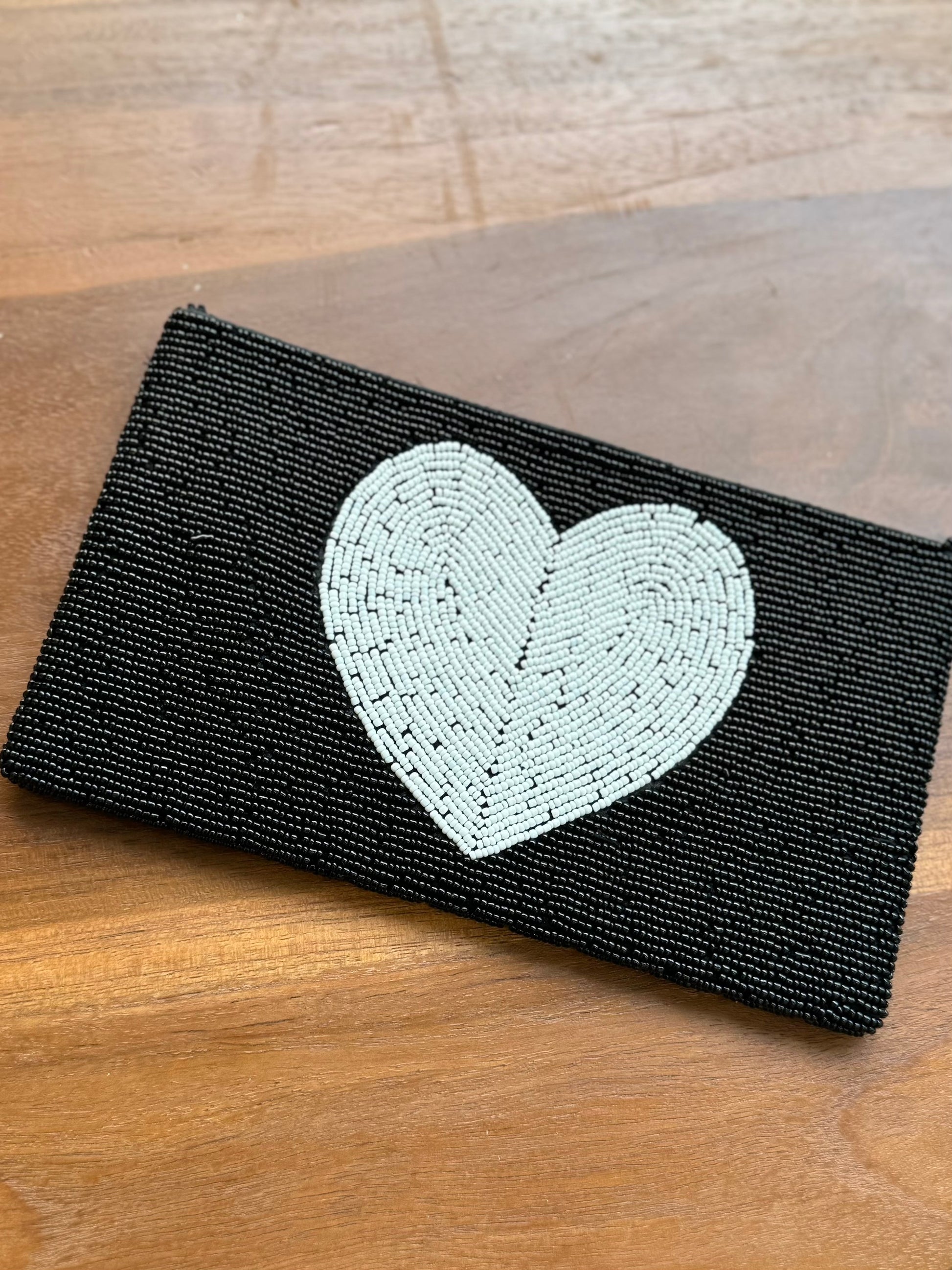 Exquisite Hand-Beading: Crafted by skilled artisans, this purse showcases intricate black beadwork that shimmers subtly, creating a luxurious texture. The striking white heart motif adds a playful contrast, making this piece stand out.
