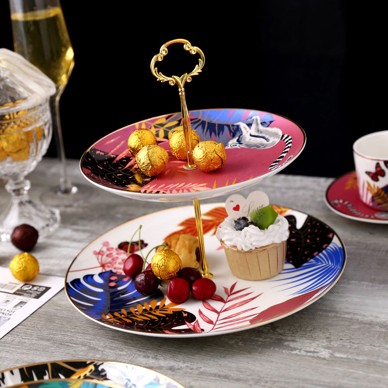 This beautiful butterfly dinner plate contrasts wonderfully with our pink lemur dessert plate (example shown in the double-tier cake stand image).