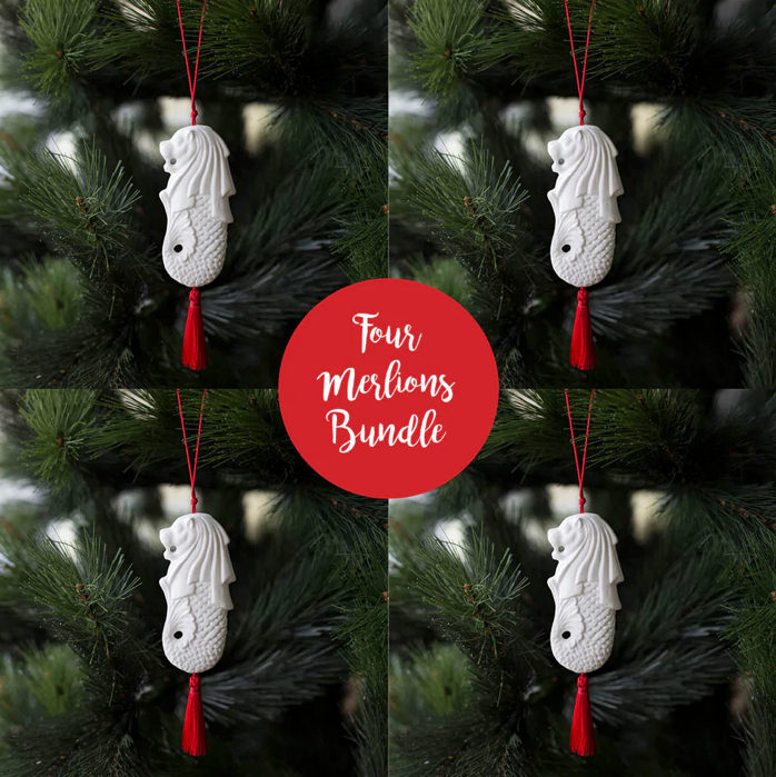 Add a touch of Singapore to your Christmas tree or home with this stunning Merlion ornament. Beautifully crafted from white fine bone china and finished with a striking red hanging loop and tassel. Presented in a gifting box, this unique ornament makes a perfect present for family and friends.