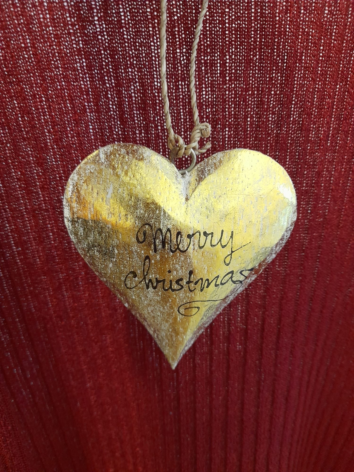 Christmas Ornament - Glittery Gold "Merry Christmas" Heart