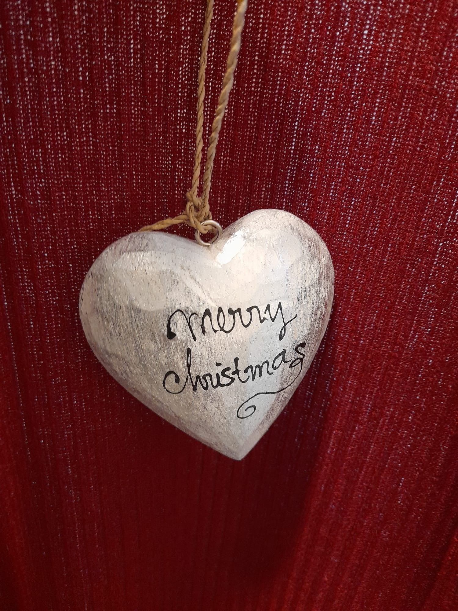 Christmas Ornament - Glittery Silver "Merry Christmas" Heart