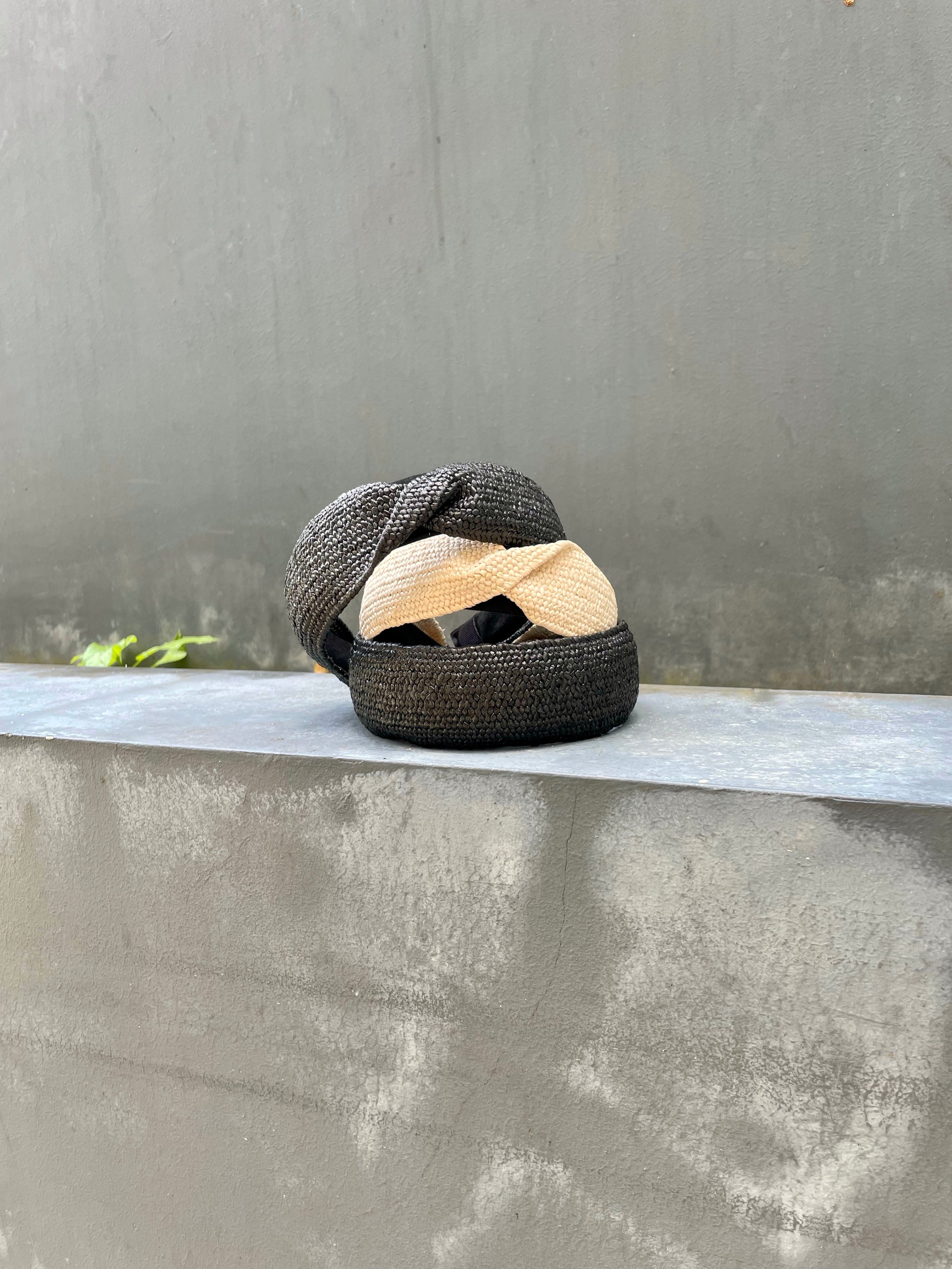 Natural woven hairbands in black/almond options. Easy everyday pieces that are gentle on your head and goes with any outfit!