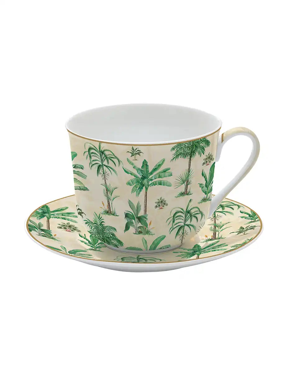 Enjoy your favourite hot beverage in style with the Oasis cup and saucer set. This 400 ml porcelain cup features a serene and captivating design inspired by desert oases, paired with a matching saucer. Its generous size and artistic flair make it perfect for leisurely coffee or tea moments. Ideal for everyday use or as a unique gift, this set adds a touch of tranquility and elegance to any table setting.