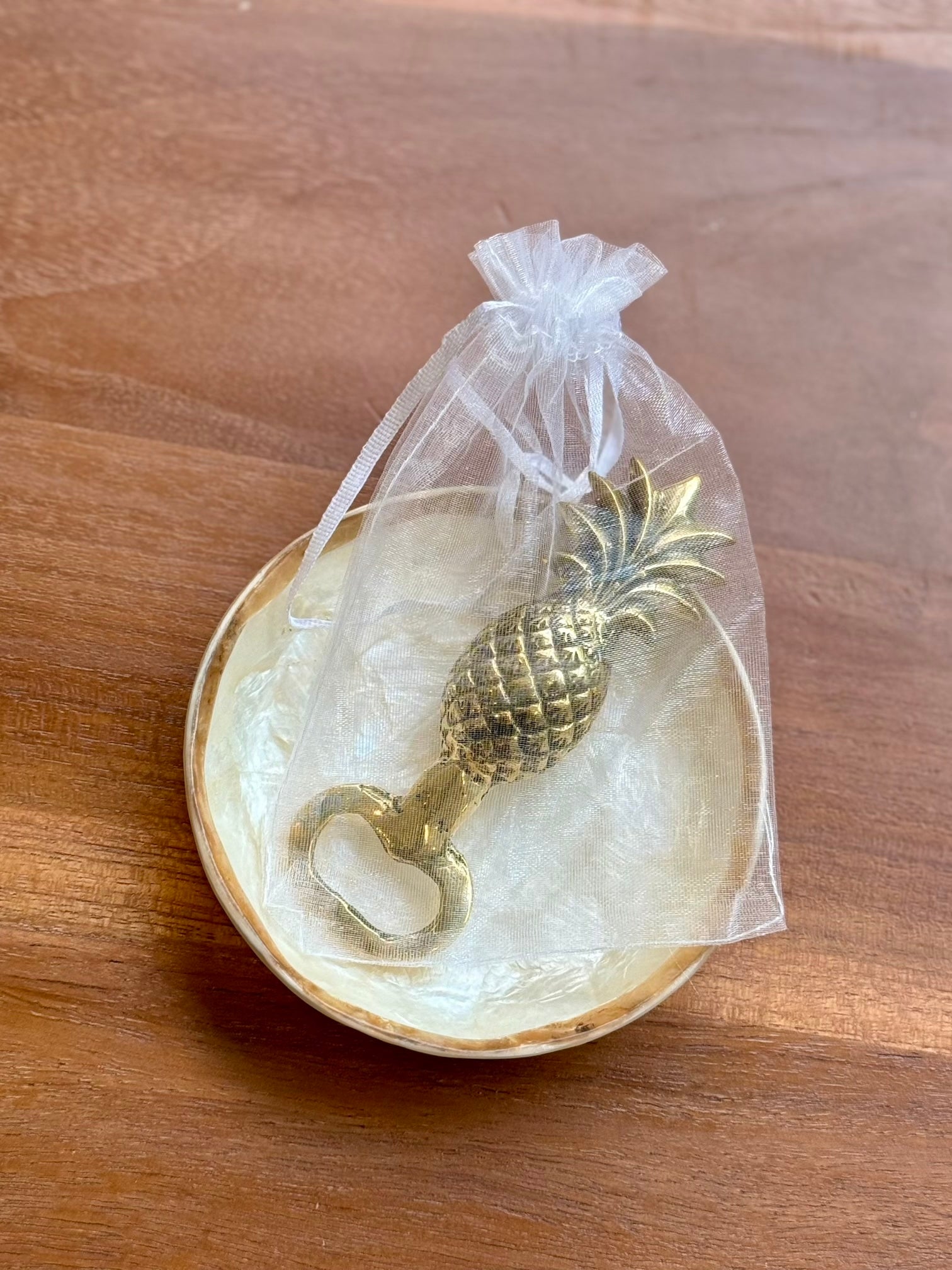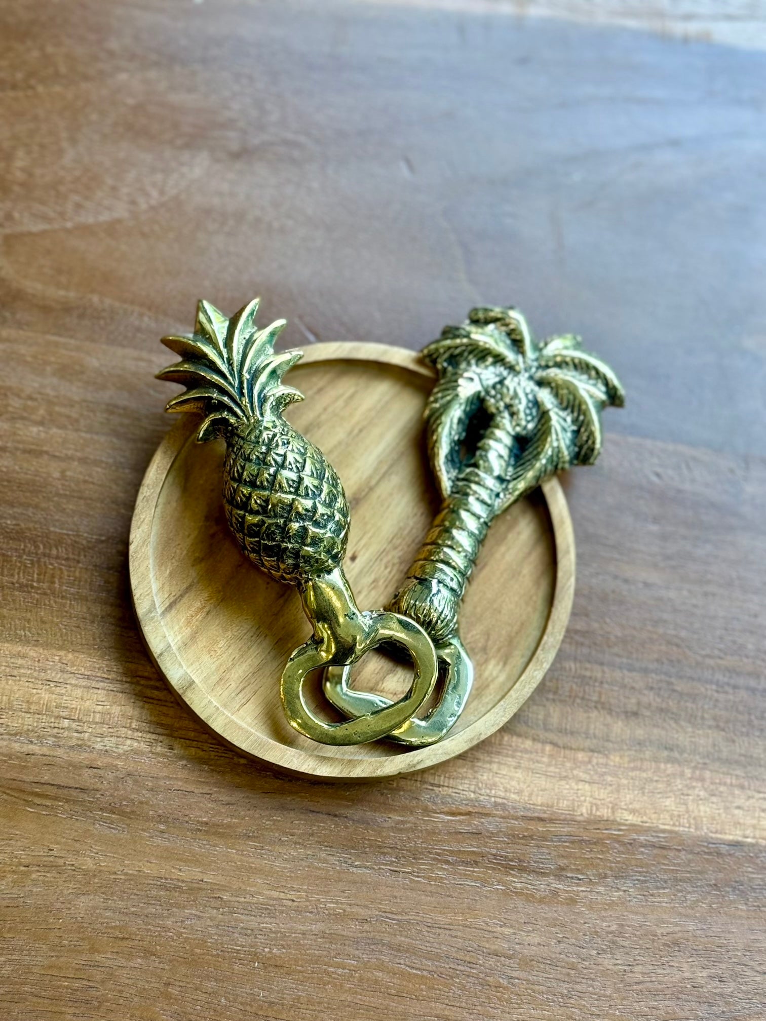 These intricately-carved palm tree bottle openers are made from solid brass and adds a tropical feel to your kitchen! Makes for a lovely token gift as well.