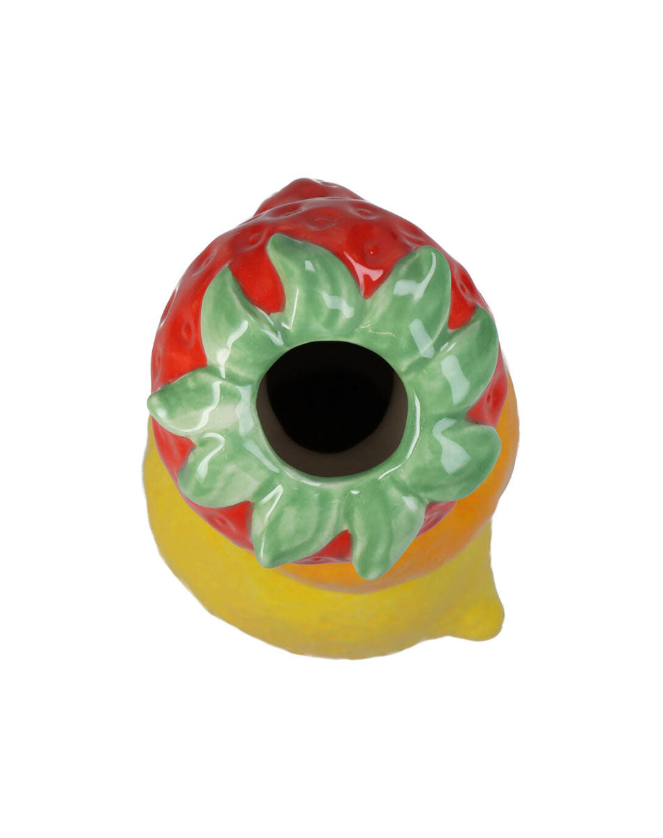 Introducing the Multi Fruit Vase, a vibrant trio of strawberry, orange, and lemon artfully stacked on each other. This whimsical vase captures the essence of fresh, juicy fruits in a playful and eye-catching design. Each fruit is meticulously detailed, with bright colours and lifelike textures bringing a refreshing burst of charm to any space. Perfect for displaying flowers or as a standalone statement piece, this unique vase adds a touch of fun and fruity elegance to your home decor.