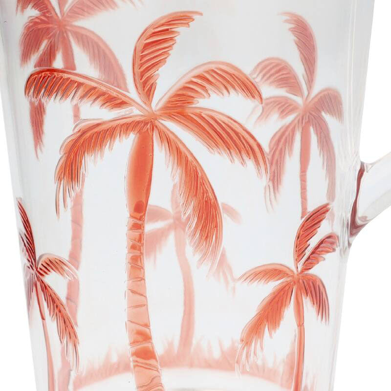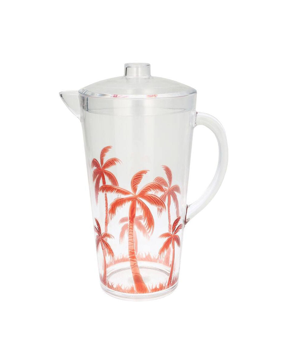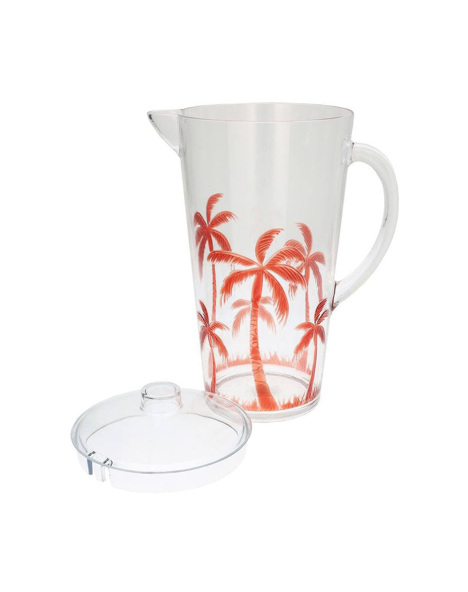 Introducing the Orange Palm Tree Acrylic Pitcher by Kersten (The Netherlands), a stylish and practical addition to your drinkware collection. Featuring vibrant orange palm trees against a clear backdrop, this jug brings a tropical vibe to any gathering. Made from durable acrylic, it’s perfect for outdoor entertaining or everyday use. The matching lid keeps your beverages fresh and free from debris, while the comfortable handle ensures easy pouring. Add a touch of summer to your table with this eye-catching and functional jug.