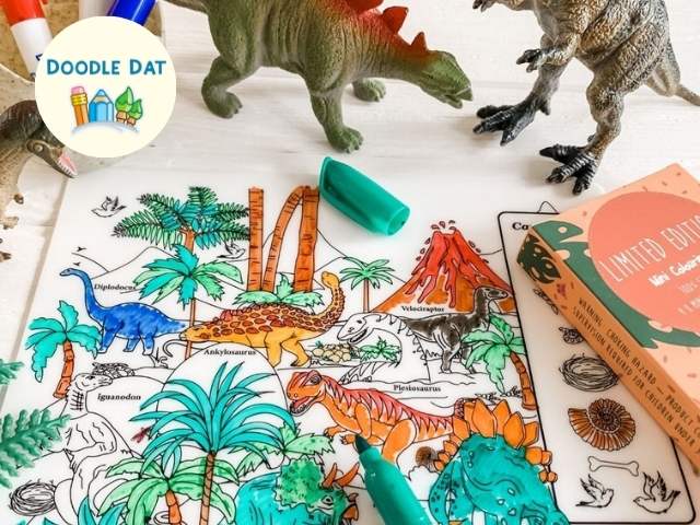 Party Pack Reusable Colouring Mat by Doodle Dat - Dinosaurs