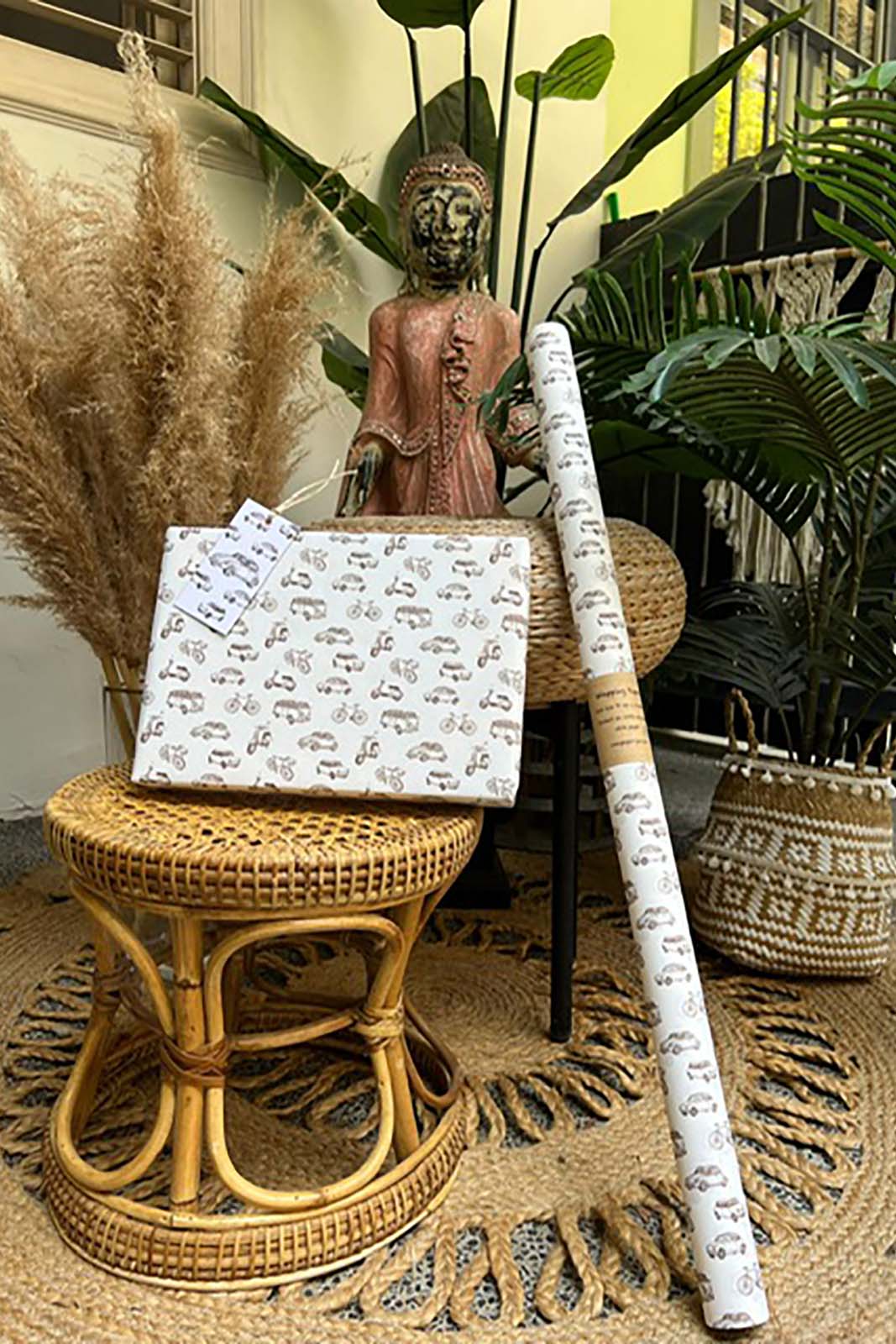 Our beautifully printed wrapping paper comes in a roll 70 cm x 3 metres. This design is printed on uncoated 100% recycled white kraft paper.