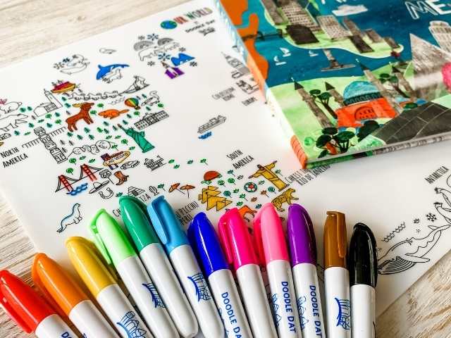 Looking for an educational tool try our new World Map Mat (A3 Size). Help your child learn about Continents, Famous Landmarks, and The Seven Wonders of the World, all in one fun colouring mat.
