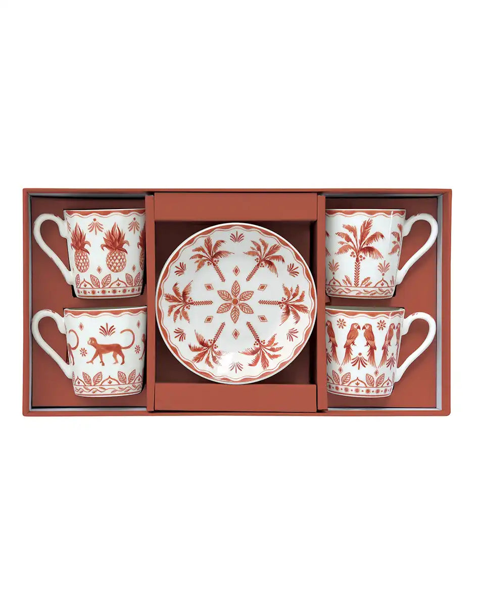 Set of Four Cups 100 ml and Saucers Exotic VibesTangerine