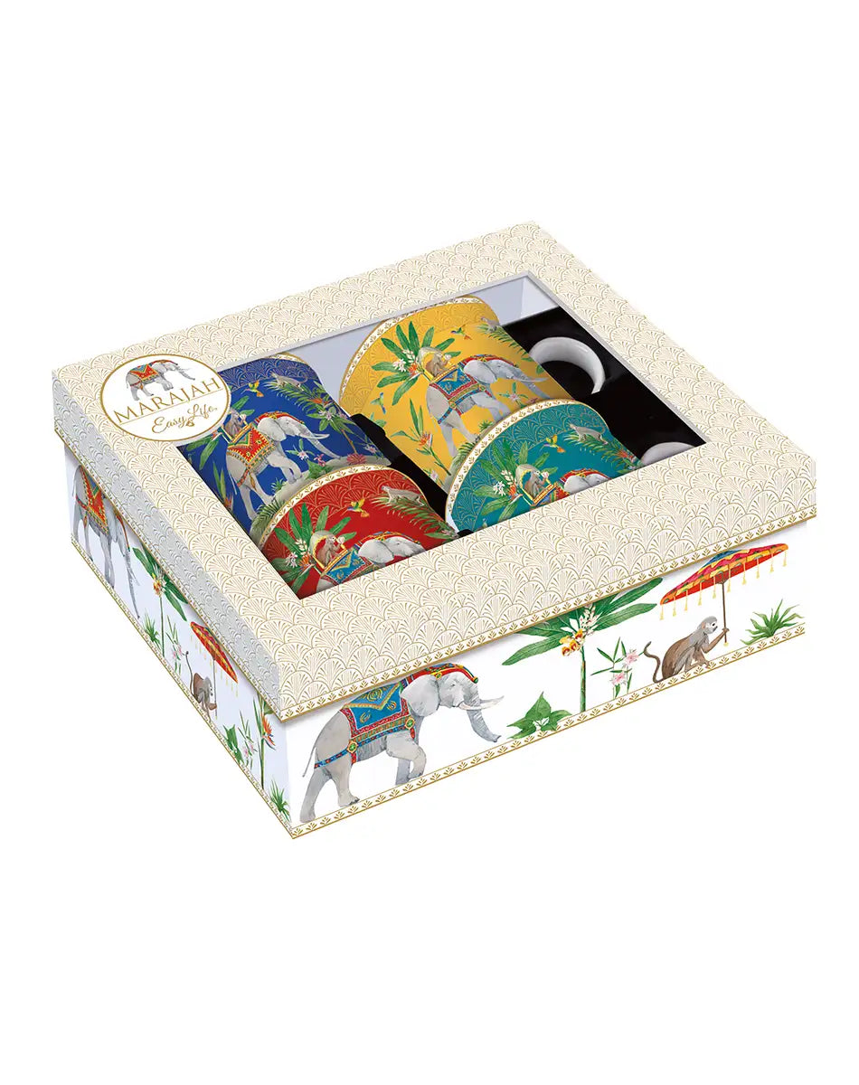 Elevate your daily coffee or tea experience with this exquisite Set of Four 300 ml Mugs from the Marajah series. Crafted from fine porcelain, each mug features intricate patterns inspired by rich cultural heritage. Beautifully packaged in a gift box, this set is perfect for both personal indulgence and thoughtful gifting. Add a touch of elegance to your drinkware collection with these stunning mugs.
