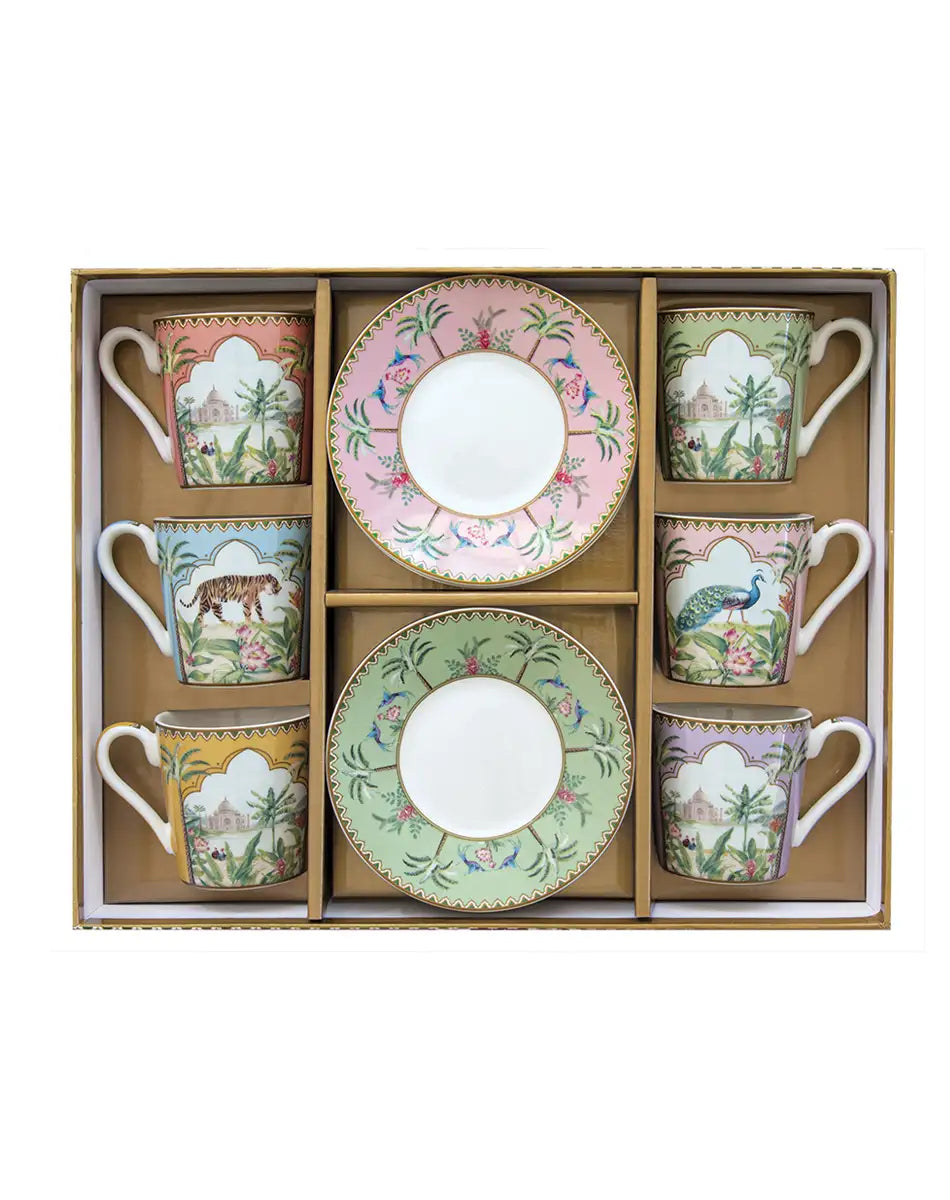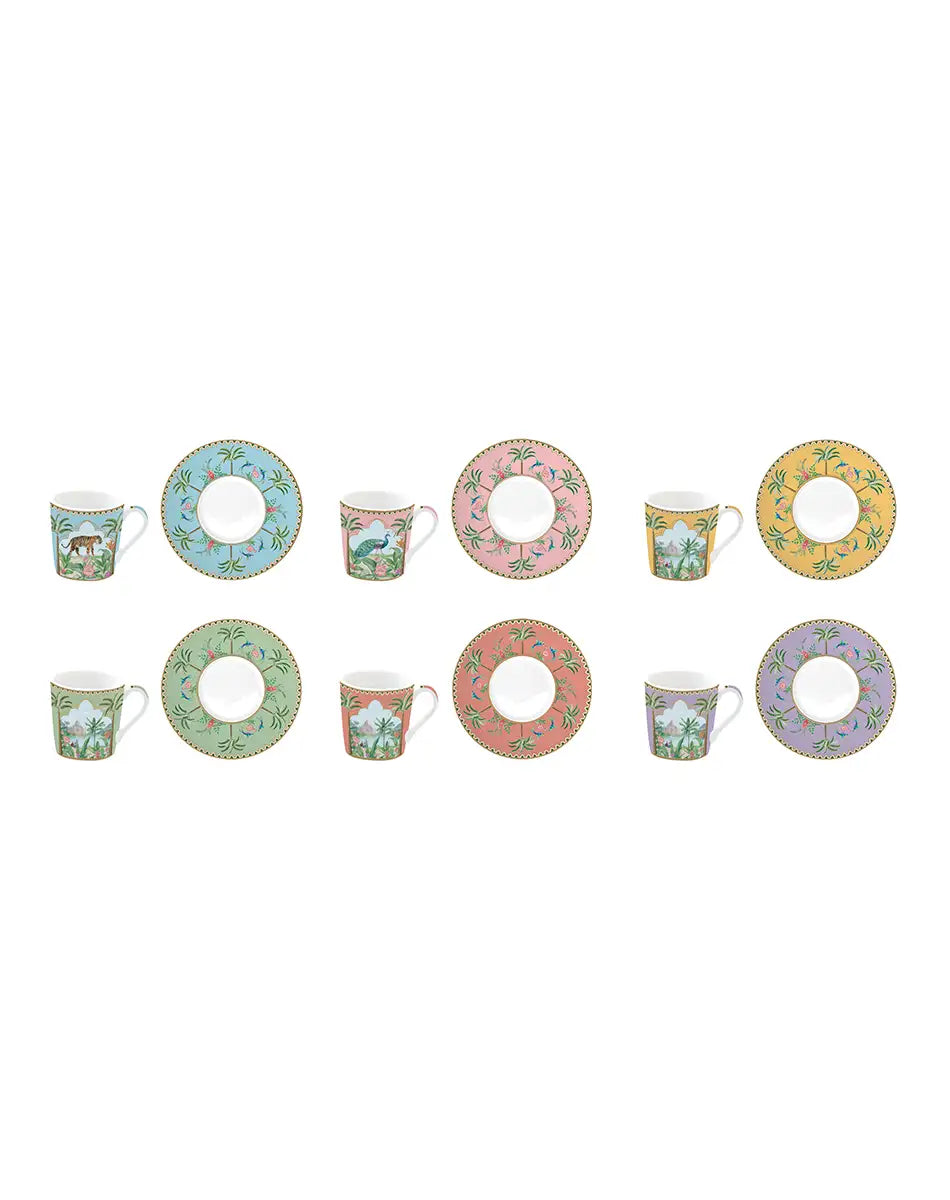 Set of Six Coffee Cups and Saucers 100 ml Paradise Sauvage