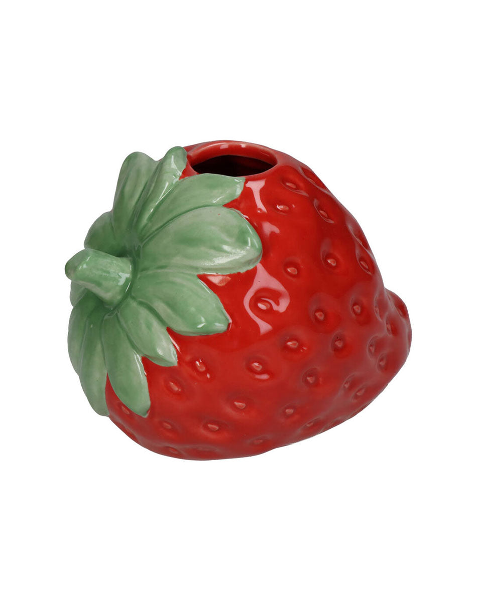 Introducing the Strawberry Vase, a charming and whimsical piece that adds a sweet touch to your decor. Shaped like a plump, ripe strawberry, this unique vase features vibrant red hues and lovely details, making it a delightful piece of deco for any room. Perfect for displaying flowers or as a standalone accent, the Strawberry Vase brings a playful and refreshing vibe to your home. Elevate your space with this fun and fruity design that combines creativity and style in one irresistible piece.